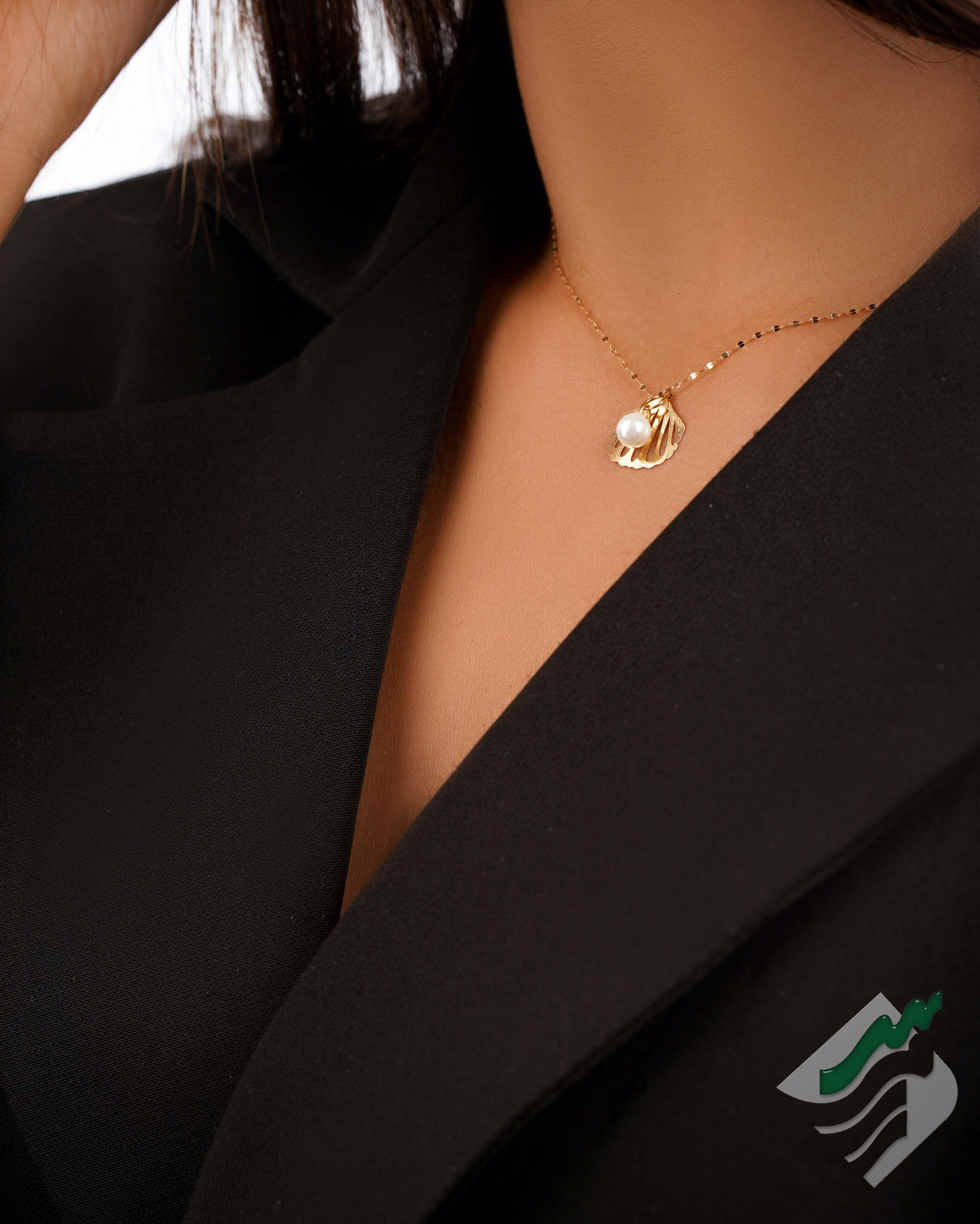 گردنبند طرح صدف همراه با مروارید نماد تمام جنبه های عنصر اب یعنی عشق
