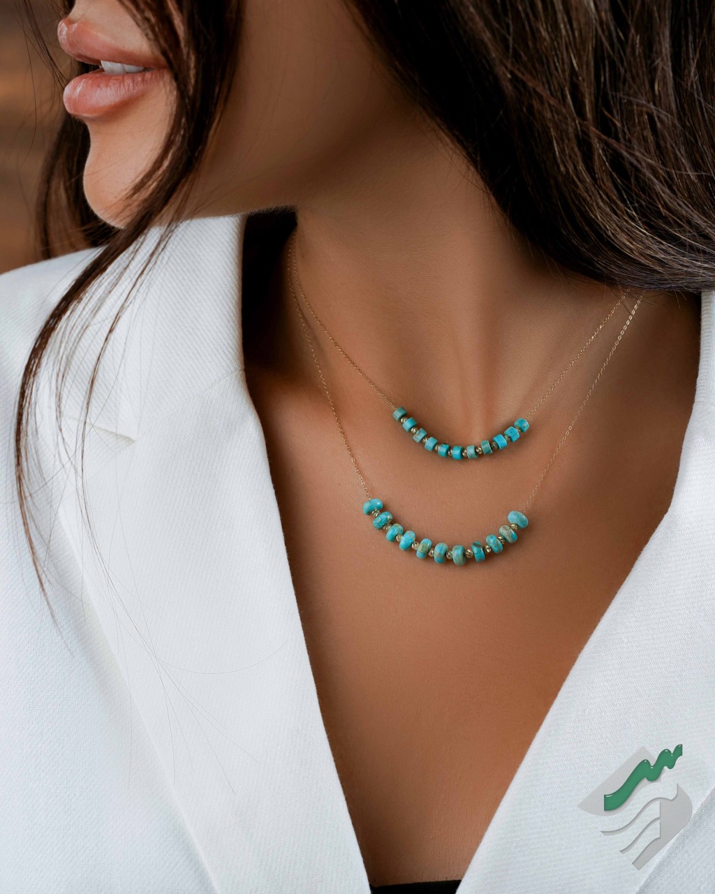 گردنبند سنگ طرح فیروزه وزن1.000 طلایی